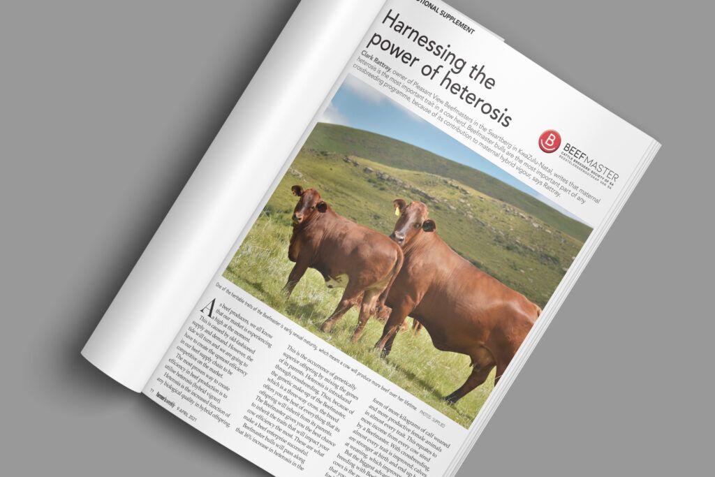 Clark Rattray, owner of Pleasant View Beefmasters in the Swartberg in KwaZulu-Natal, writes that maternal heterosis is the most important trait in a cow herd. Beefmaster bulls are the most important part of any crossbreeding programme, because of its contribution to maternal hybrid vigour, says Rattray.